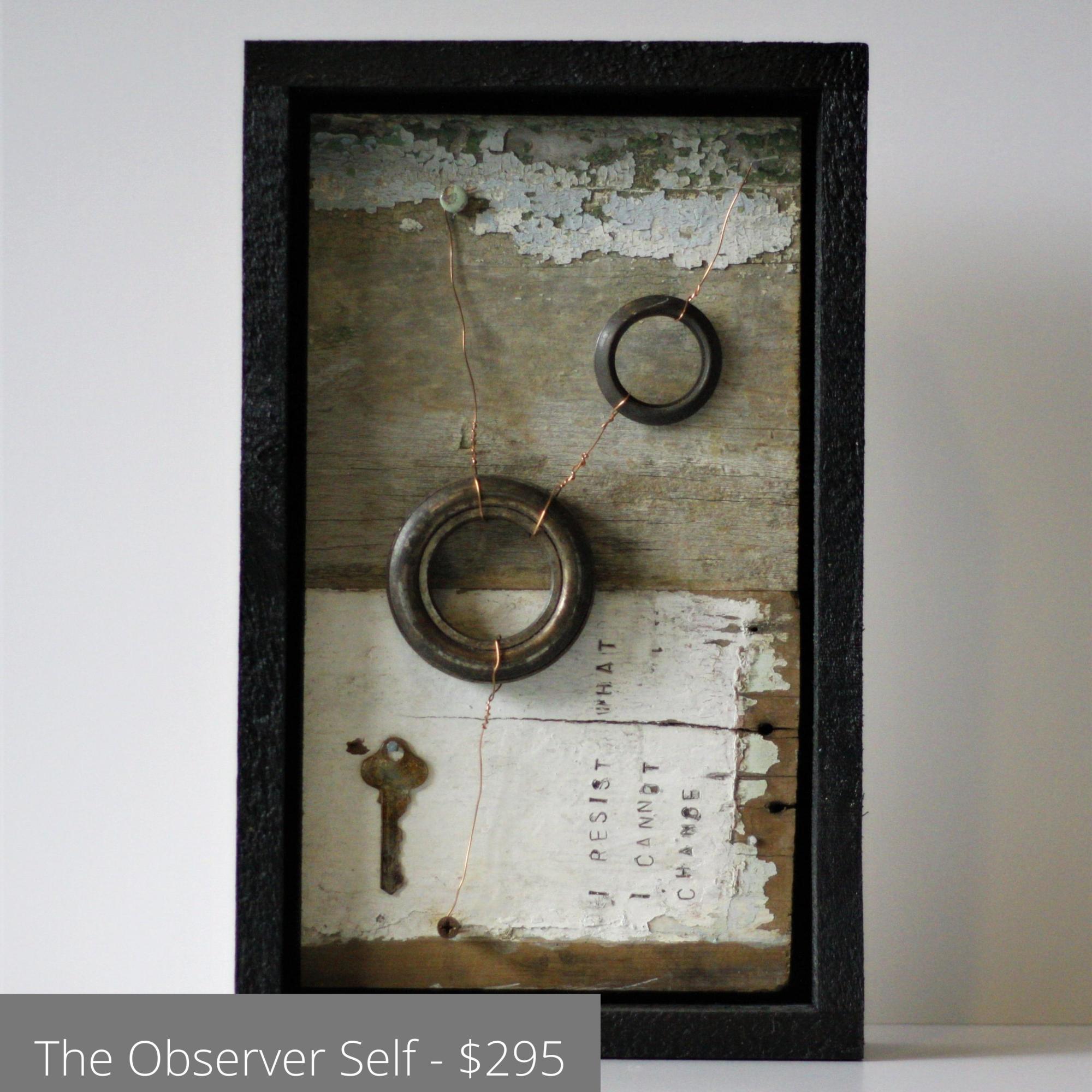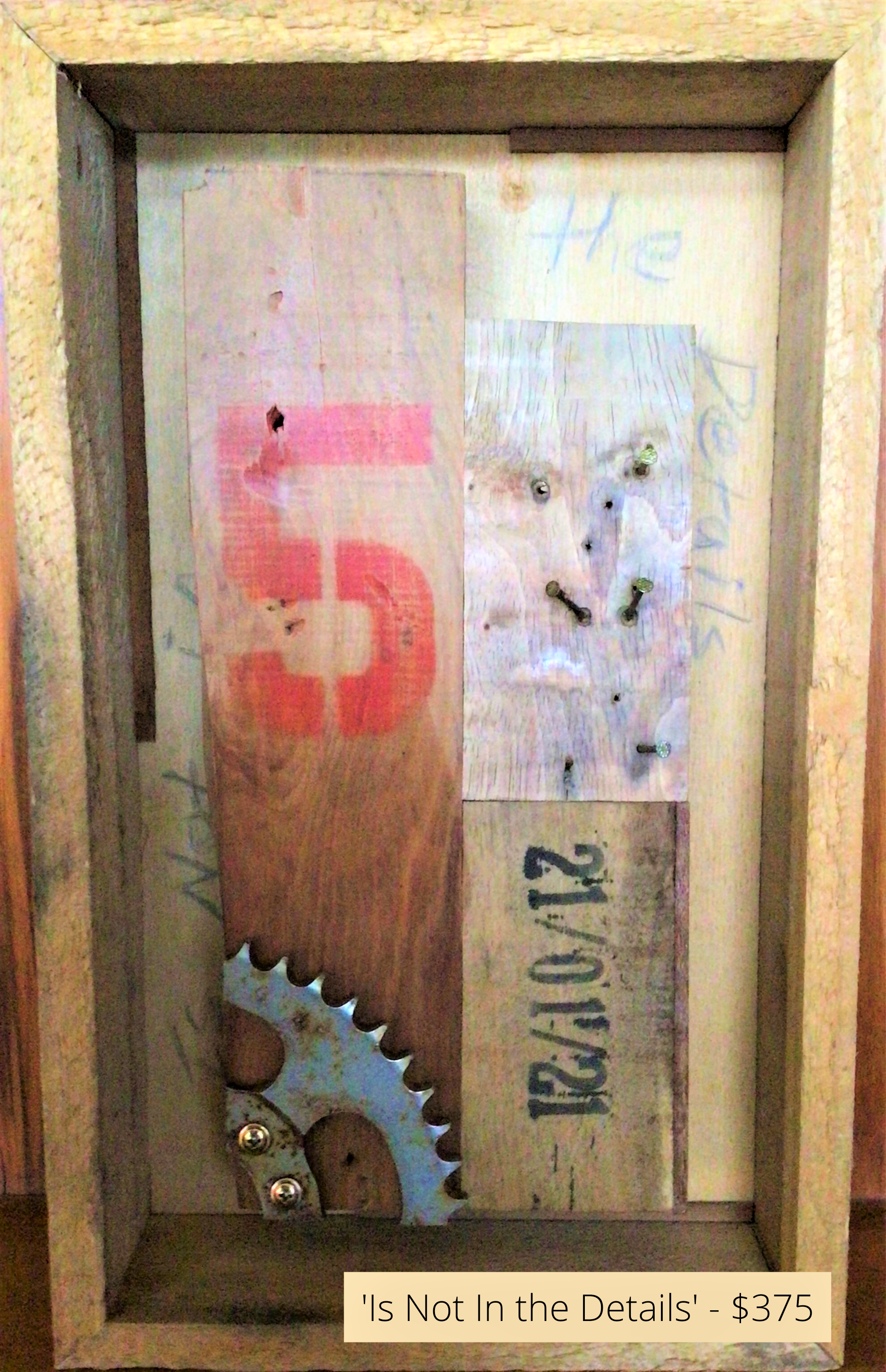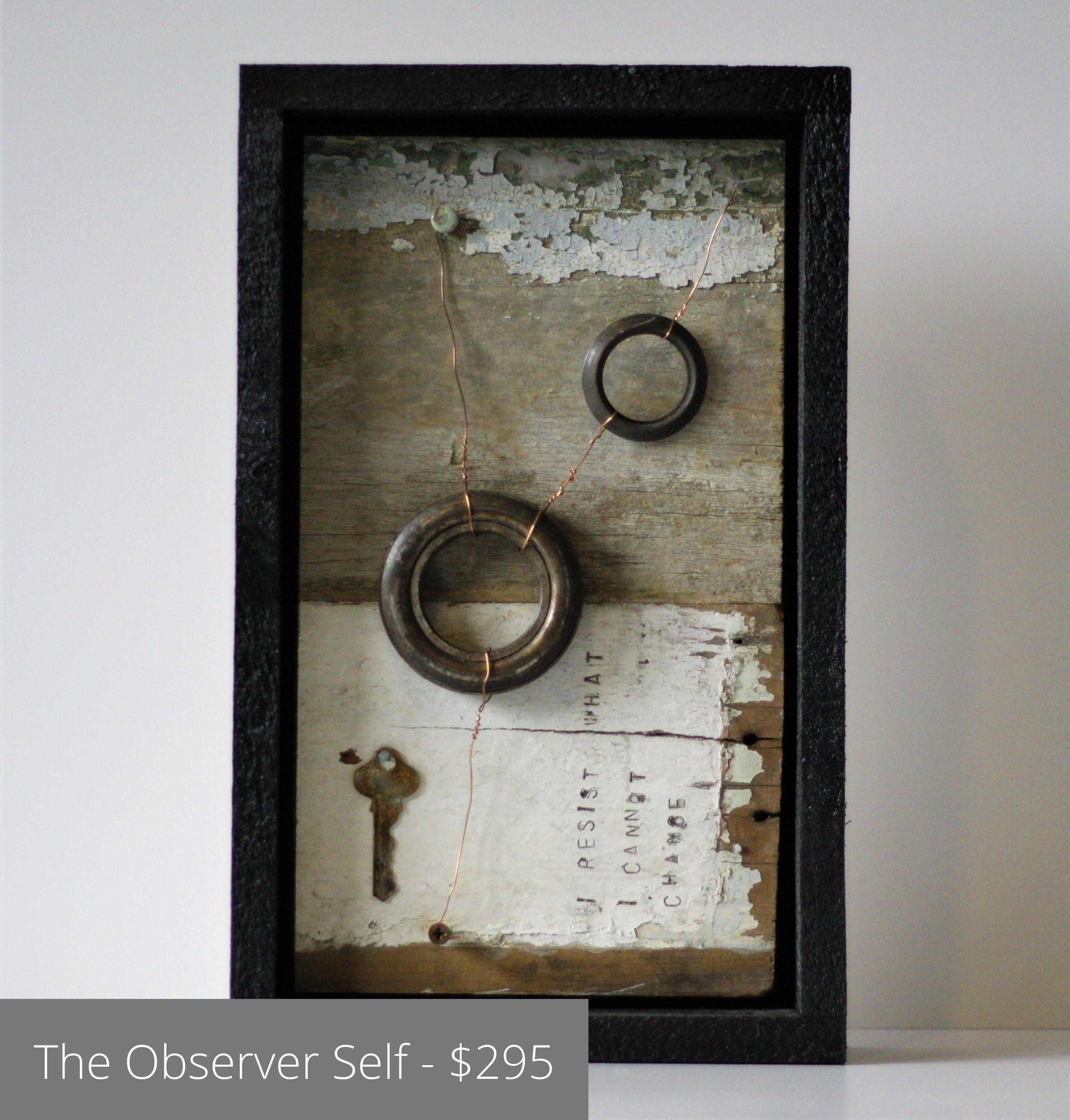 My assemblage pieces allow me to stretch my creativity by identifying new ways to combine ordinary and discarded objects.