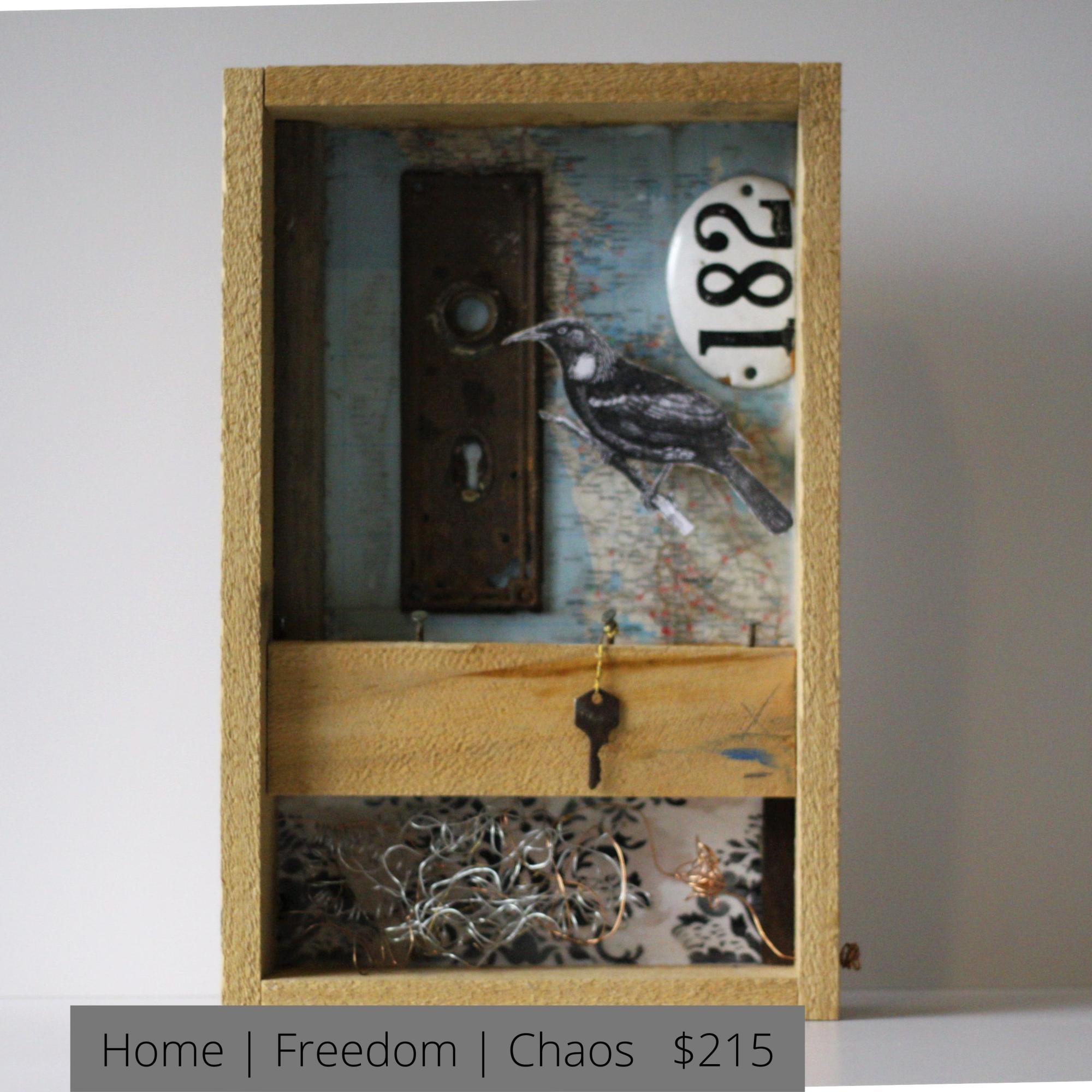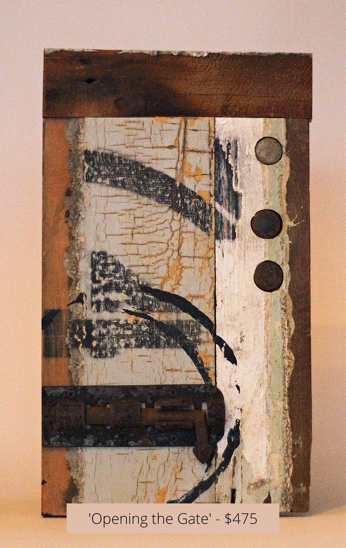 I call this gallery my ‘mixed media assemblages’ collection. I make these pieces with found bits and pieces of metal, wire, wood, objects and basically anything else I encounter that I believe adds something to the story behind the piece.